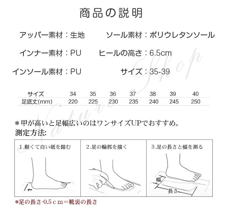 サイズ: 34(22.0) 35(22.5) 36(23.0) 37(23.5) 38(24.0) 39(24.5) 40(25.0)