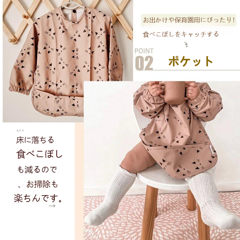 お食事エプロン 長袖 ベビー ビブ ポ