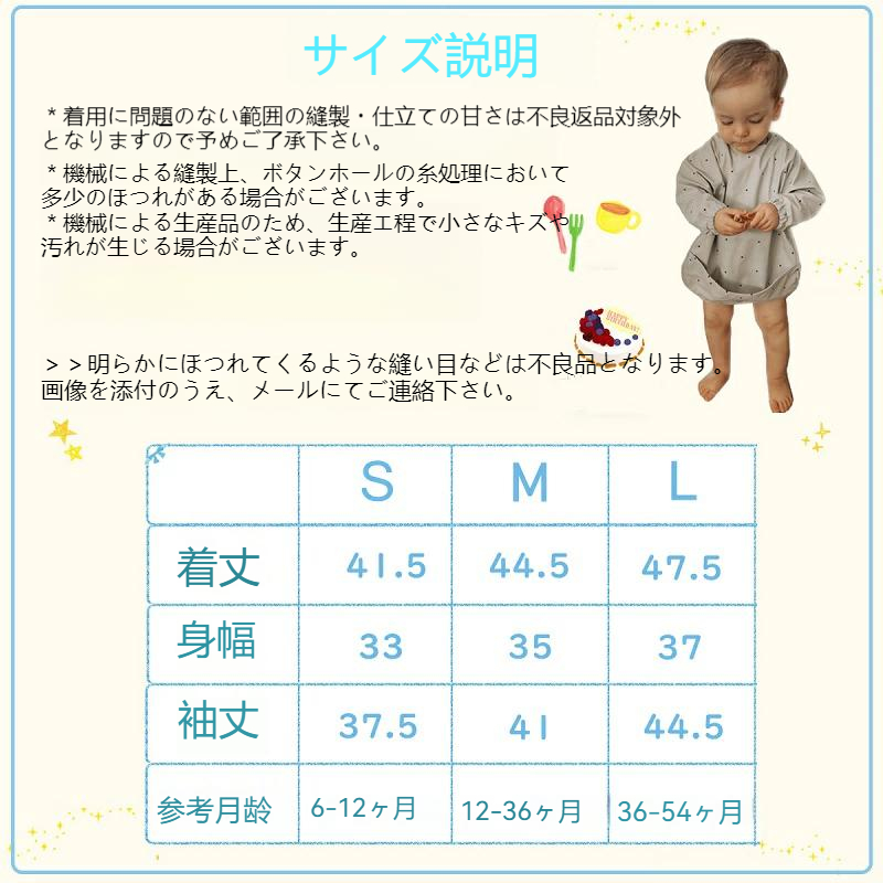 サイズ: S(6-12ヶ月) M(12-36ヶ月) L(36-54ヶ月)