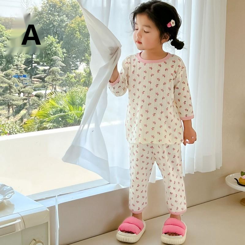 パジャマ 女の子 春 秋 綿 全3色 花柄 90cm 100cm 110cm 120cm 130cm 140cm 150cm キッズ ガールズ 長袖 前開き 子供 ジュニア ルームウェア セットアップ