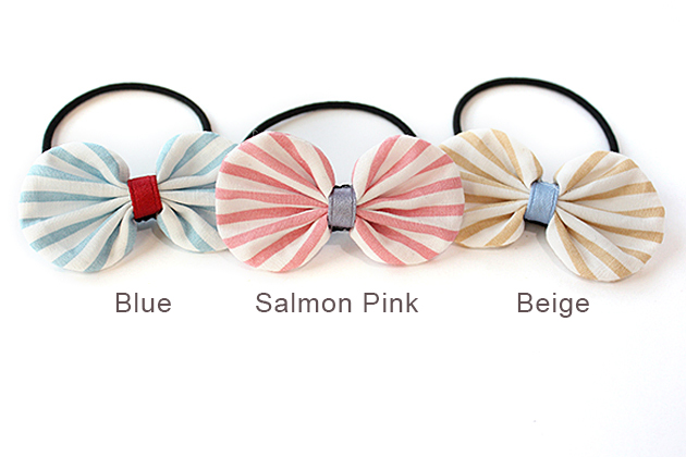 ストライプ柄袋りぼんデザイン キッズ ヘアゴム ヘアアクセサリー 髪飾り 髪留め 保育園 幼稚園 袋りぼん