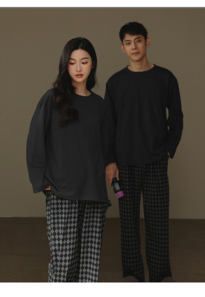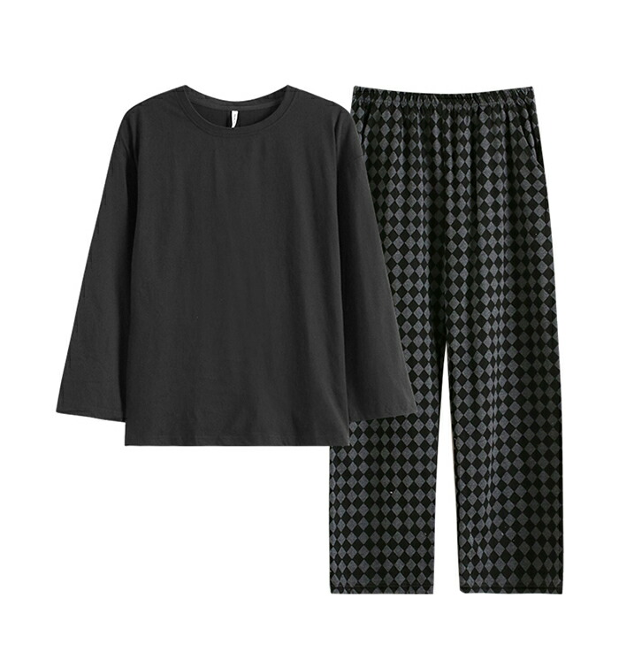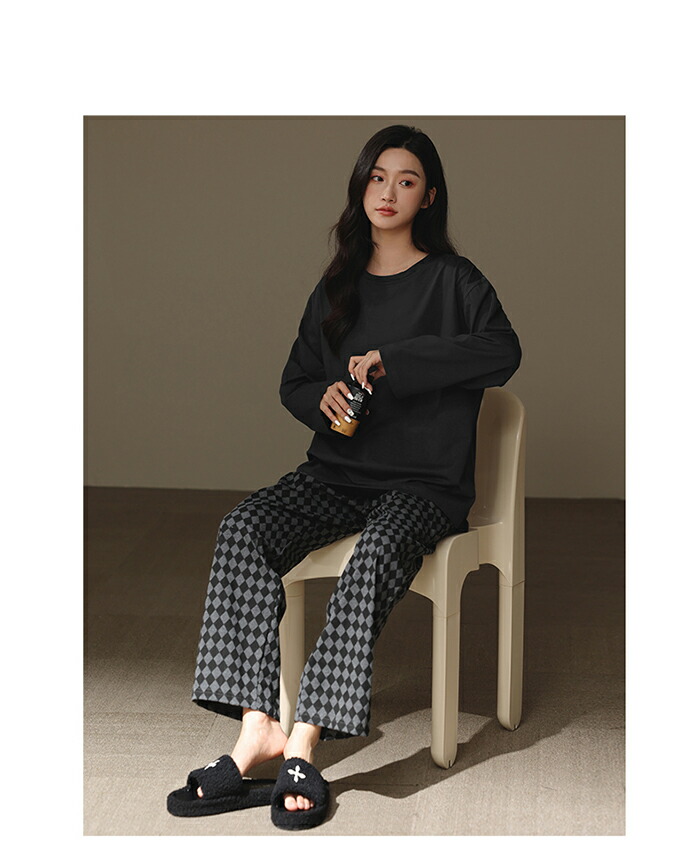 ペアパジャマ カップル ルームウェア レディース メンズ 上下セット 韓国風 シンプル 格子柄 カジュアル ペアルック 長袖 部屋着 ナイトウエア 大きいサイズ 結婚祝い クルーネック ins 春夏秋