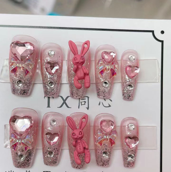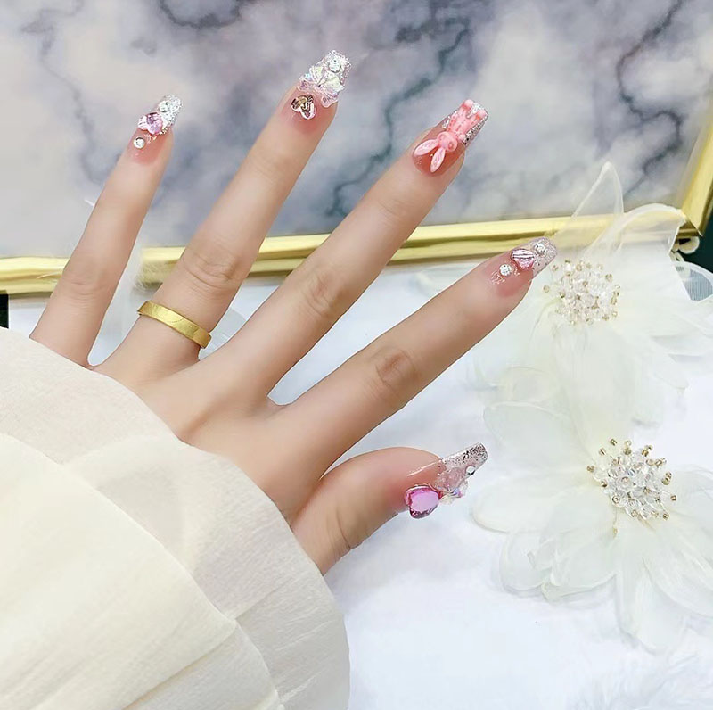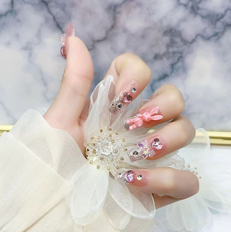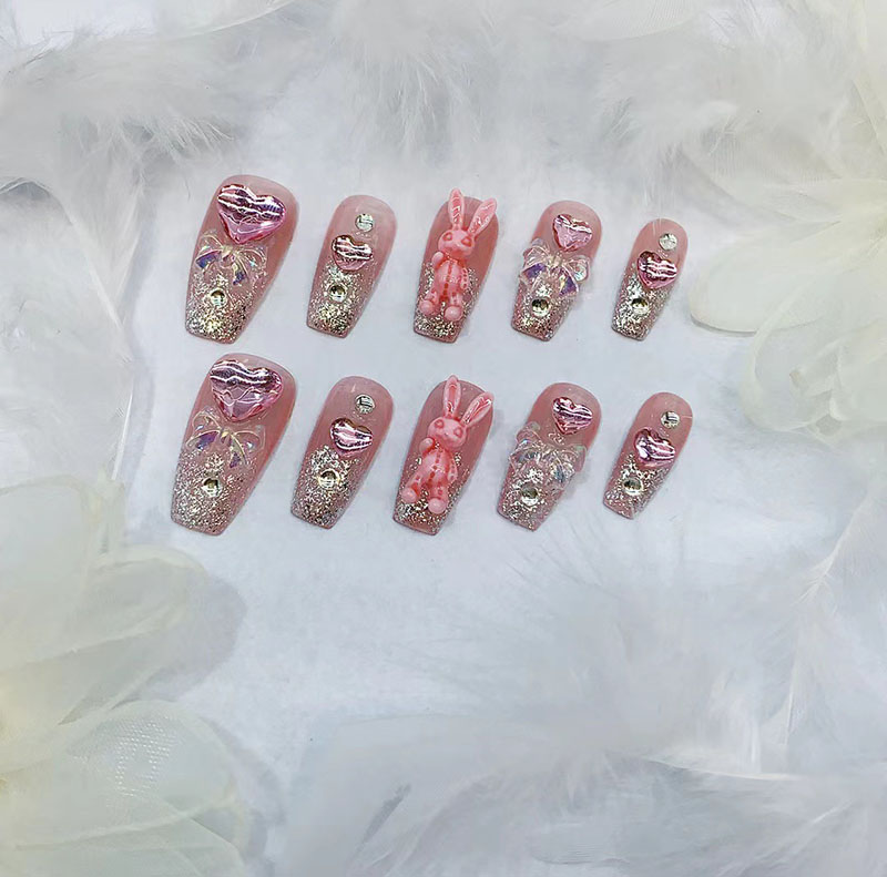 ネイルチップ 10枚入り 全4サイズ 手つくり 淡い アートチップ デザインチップ 付け爪 結婚式 披露宴 成人式 ウエディング キラキラ ハート ウサギ スクエア ロング つけ爪 ショート ブライダ