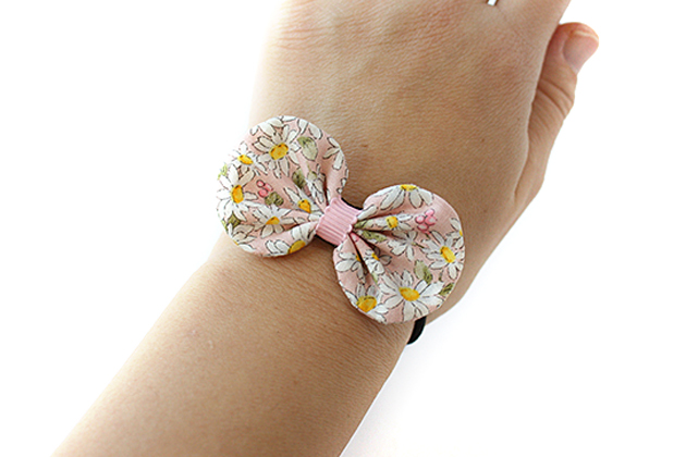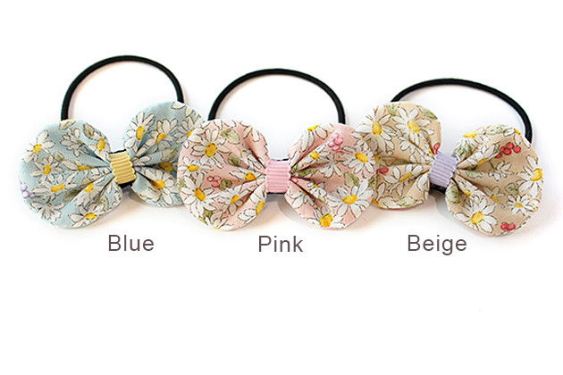 ホワイトガーベラ柄袋りぼんデザイン キッズ ヘアゴム ヘアアクセサリー 髪飾り 髪留め 保育園 幼稚園 袋りぼん