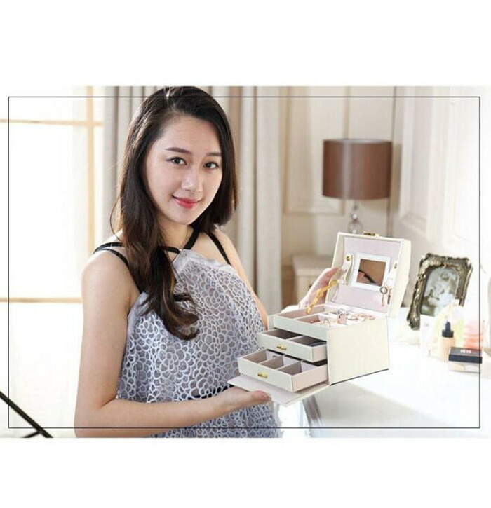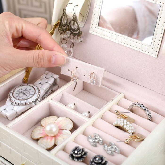 鏡 鍵付き小物入れ 大容量ジュエリーボ