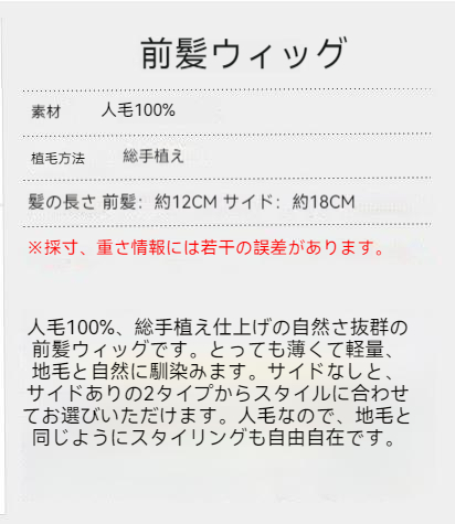人毛100% 前髪ウィッグ ウィッグ