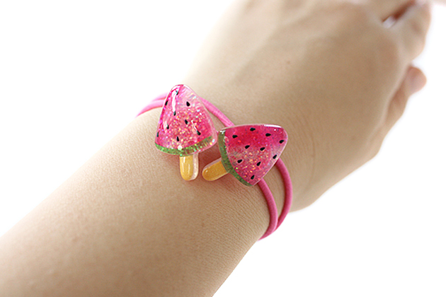 miniラメクリアスイカバーパーツデザイン ヘアゴム キッズ 子供 パーツ 可愛い ヘアアクセサリー 幼稚園 小学校 保育園 スイカ
