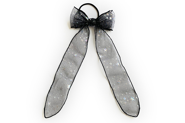 BIGふんわり足付きリボン◎Blackオーロラ星柄チュールデザイン 子供 キッズ ヘアゴム ヘアアクセサリー 髪飾り 髪留め 保育園 幼稚園 フォーマル りぼん 卒業式 入学式 チュール