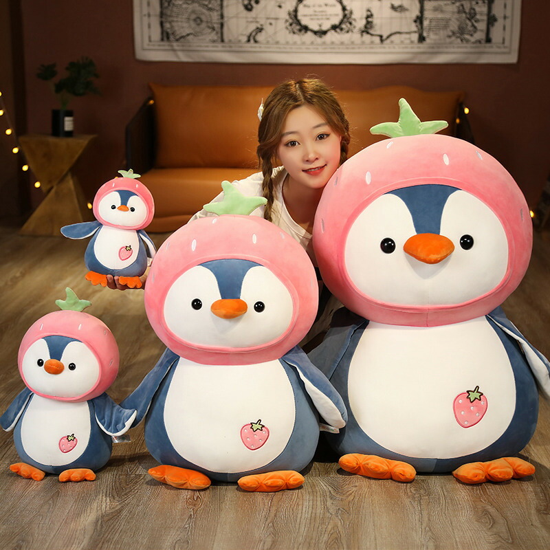 ぬいぐるみ 全2デザイン ペンギン ストローベリー strawberry orange オレンジ 抱き枕 クッション penguin イチゴ 苺 子供 おもちゃ プレゼント 動物 可愛い 彼女に ふわ
