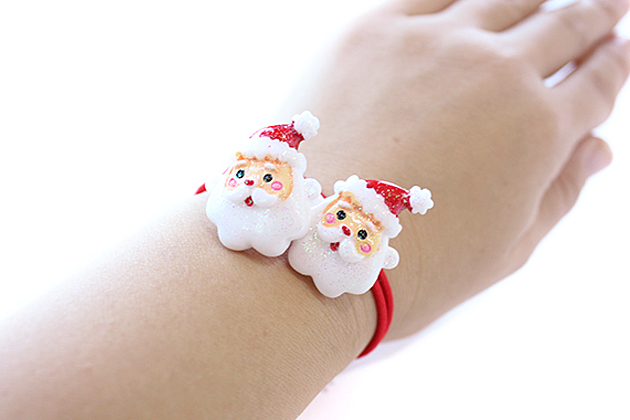 ラメ耳出しサンタさんパーツデザイン ヘアゴム キッズ 子供 ヘアアクセサリー 髪飾り 髪留め 保育園 幼稚園 パーツ クリスマス