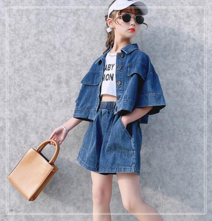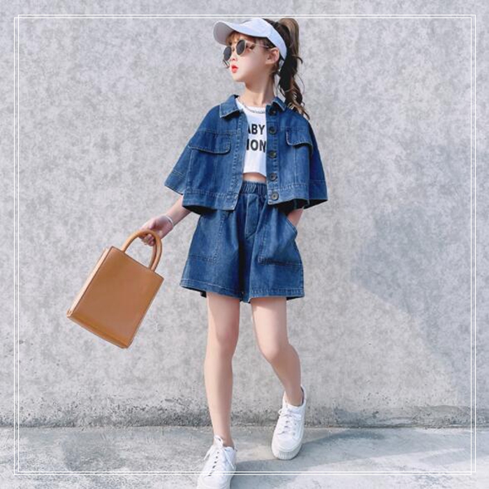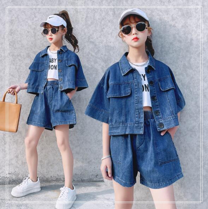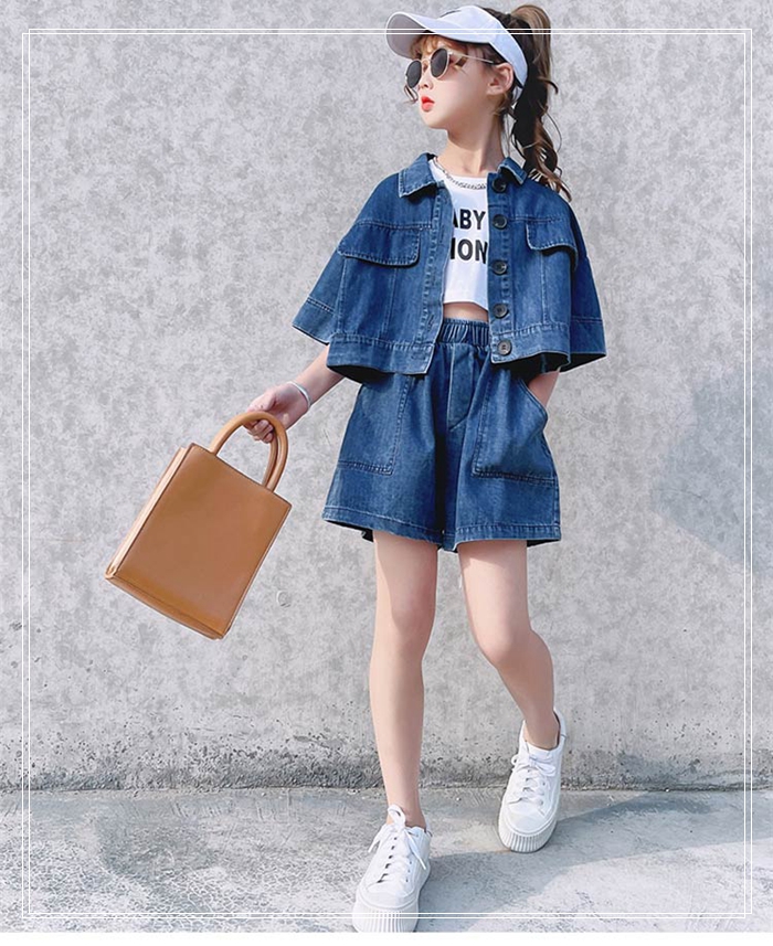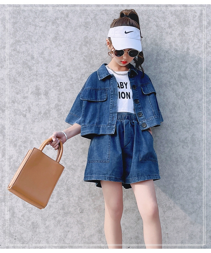 女の子 半袖 デニム ジャケット +