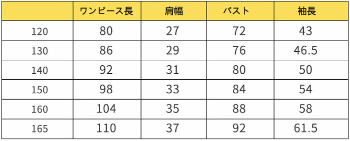 サイズ: 120(身長約110cm) 130(身長約120cm) 140(身長約130cm) 150(身長約140cm) 160(身長約150cm) 165(身長約160cm)