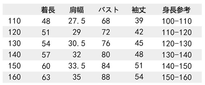 サイズ: 110(身長約105cm) 120(身長約115cm) 130(身長約125cm) 140(身長約135cm) 150(身長約145cm) 160(身長約155cm)