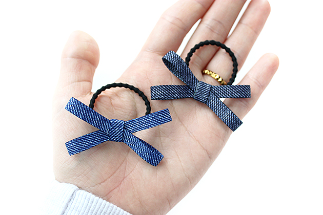 デニム地風ダブル細りぼんデザイン キッ