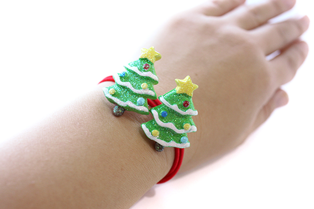ラメ大きな星付きツリーパーツデザイン ヘアゴム キッズ 子供 ヘアアクセサリー 髪飾り 髪留め 保育園 幼稚園 パーツ クリスマス