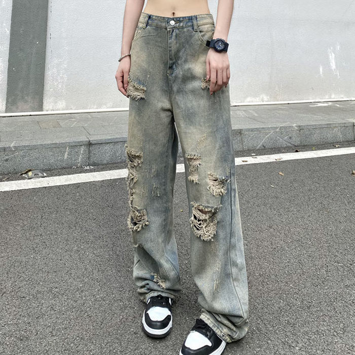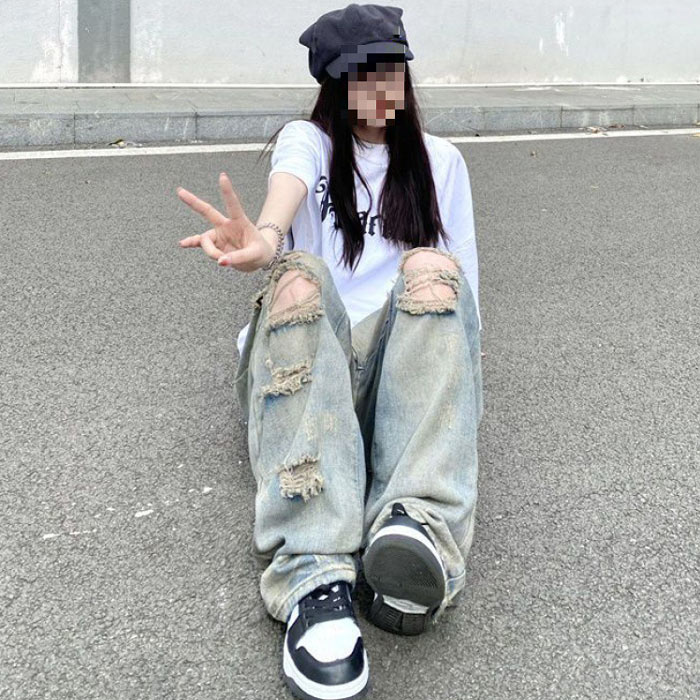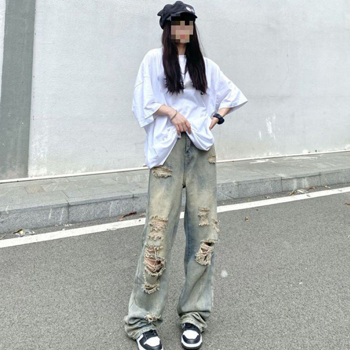 デニムパンツ ビジュー付き