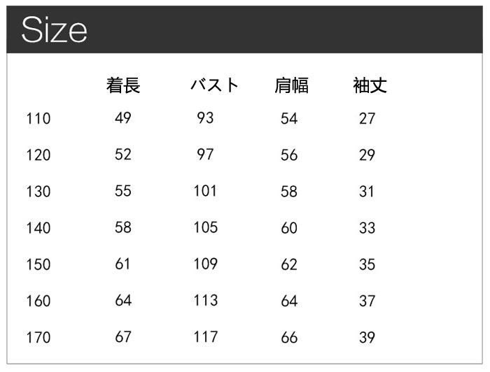 サイズ: 110(身長約105cm) 120(身長約115cm) 130(身長約125cm) 140(身長約135cm) 150(身長約145cm) 160(身長約155cm) 170(身長約165cm)