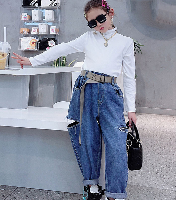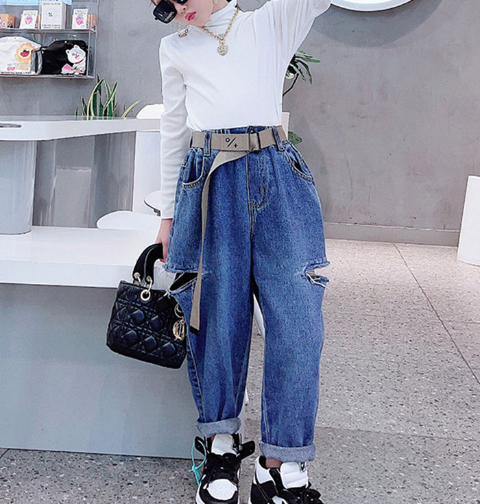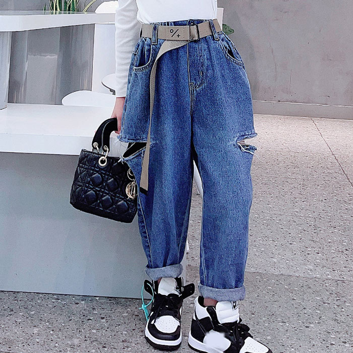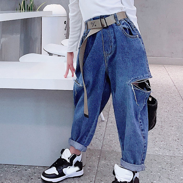 デニムパンツ ビジュー付き