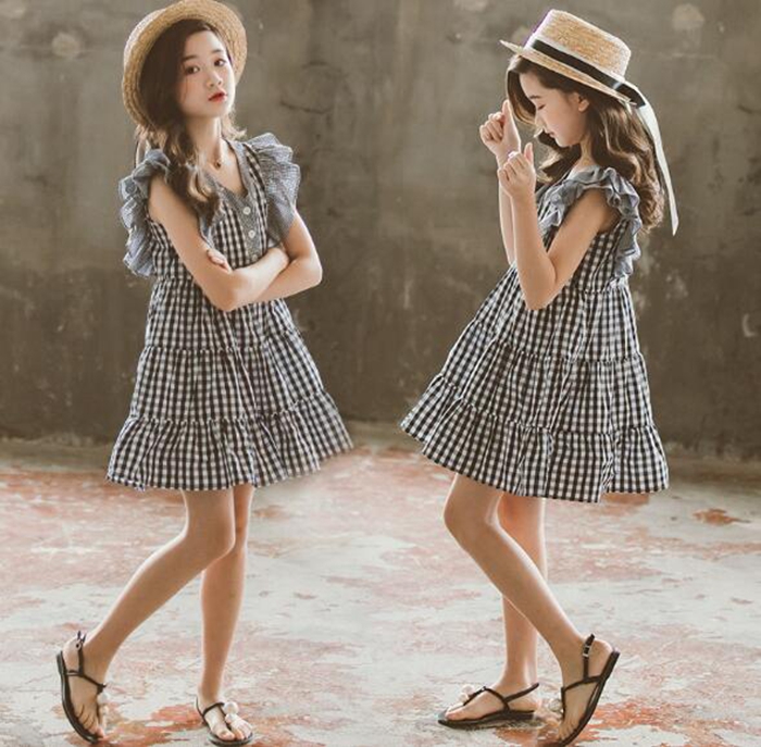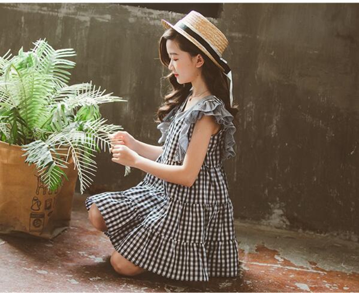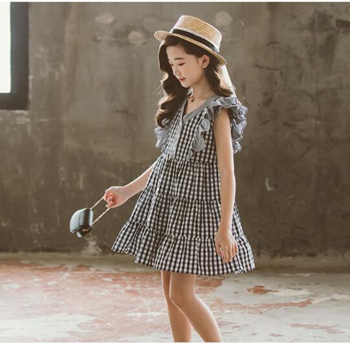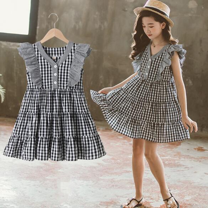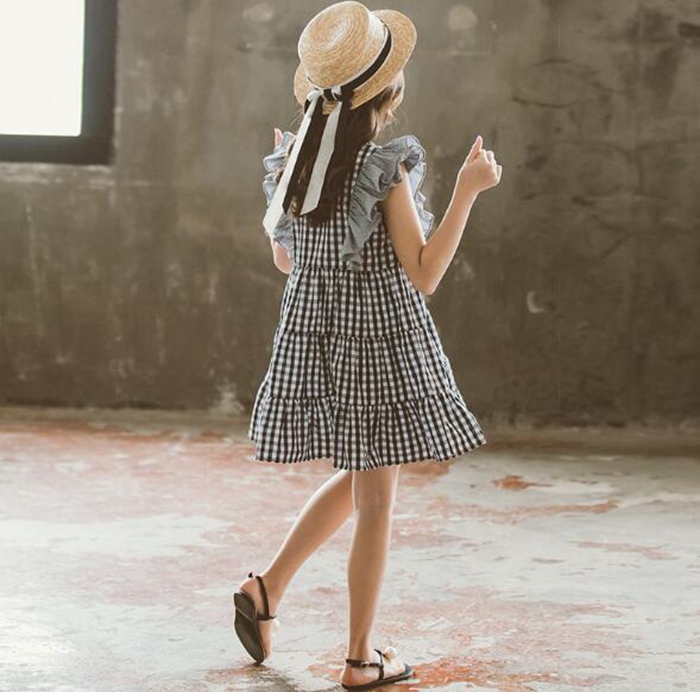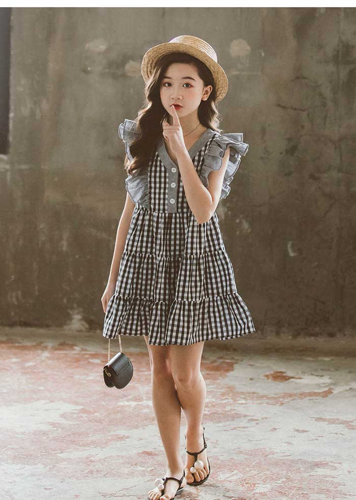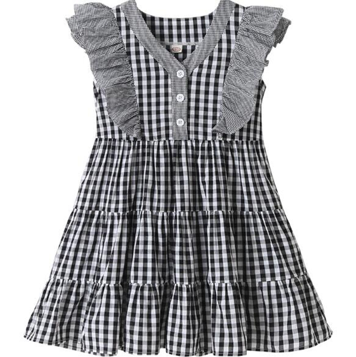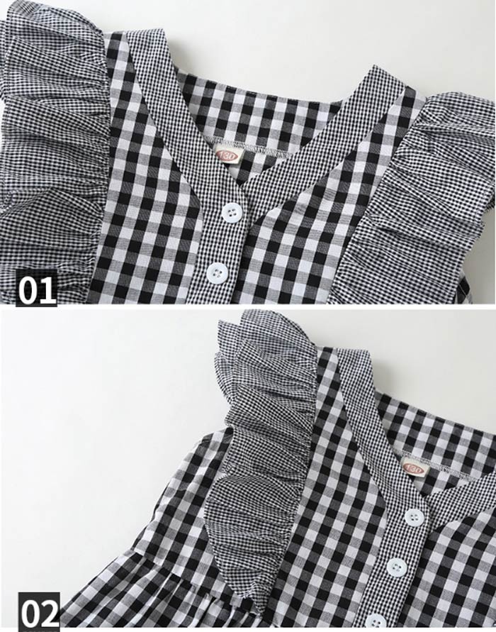 女の子 チェック ワンピース ノースリ