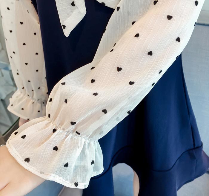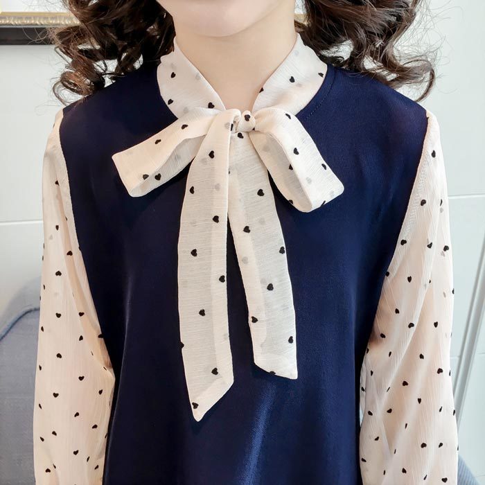 シアースリーブ ドッキングシャツ ボウタイシャツブラウス