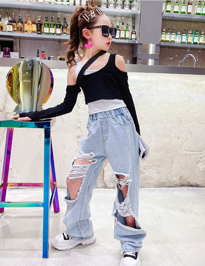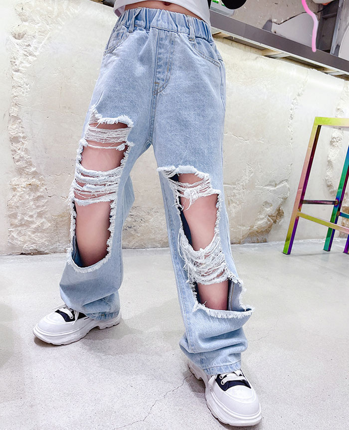 デニムパンツ ビジュー付き