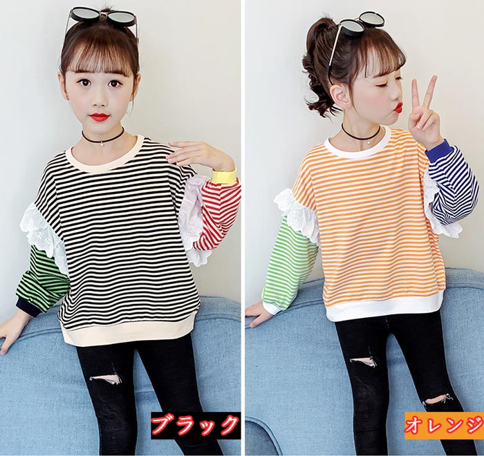 キッズ 子供服 長袖tシャツ おしゃれな こども用 ボーダー柄 tシャツ 女の子 110 120 130 140 150 160