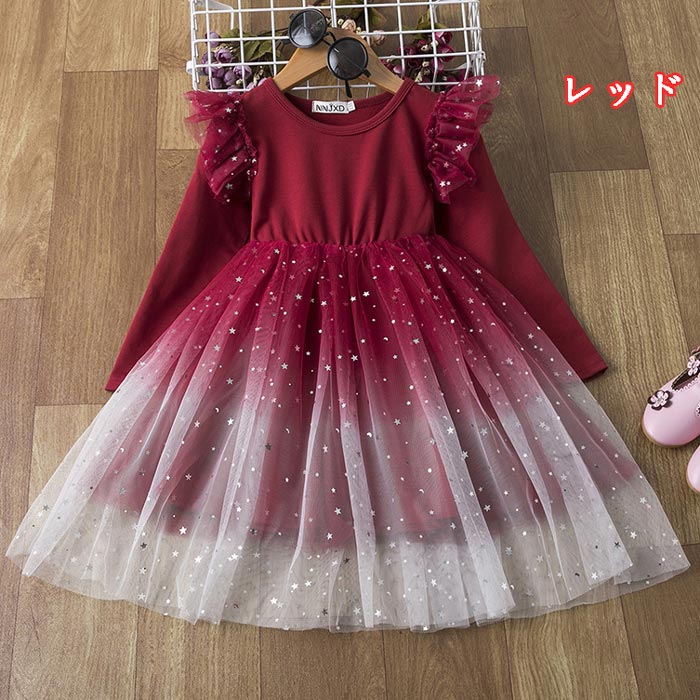 キッズドレス 可愛い 長袖ワンピース チュールスカート ワンピ 長袖 ベビー 幼児 キッズドレス 110cm120cm130cm140cm150cm