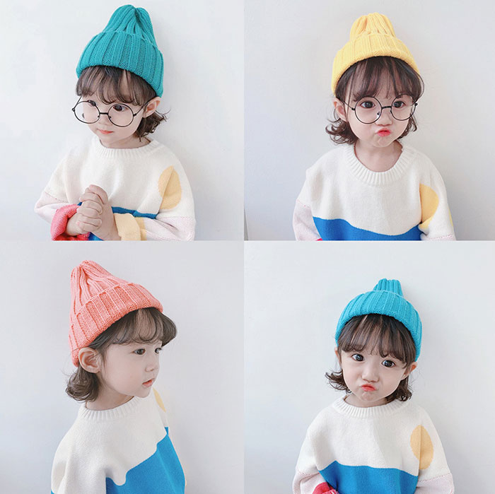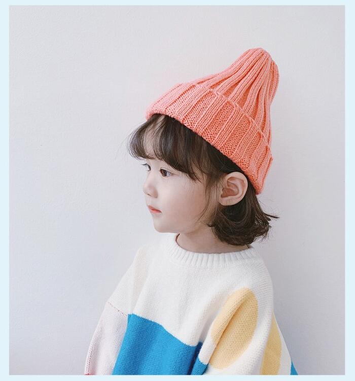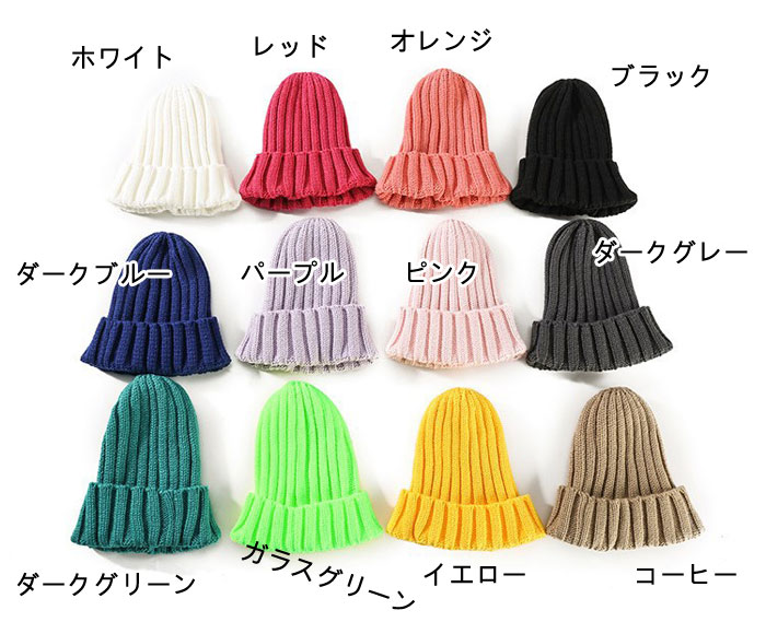 キッズ 帽子 ニット帽 無地 カラフル