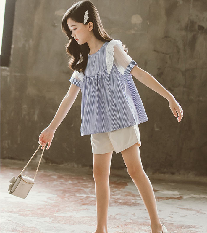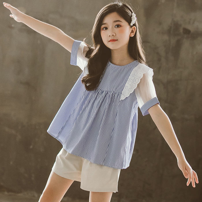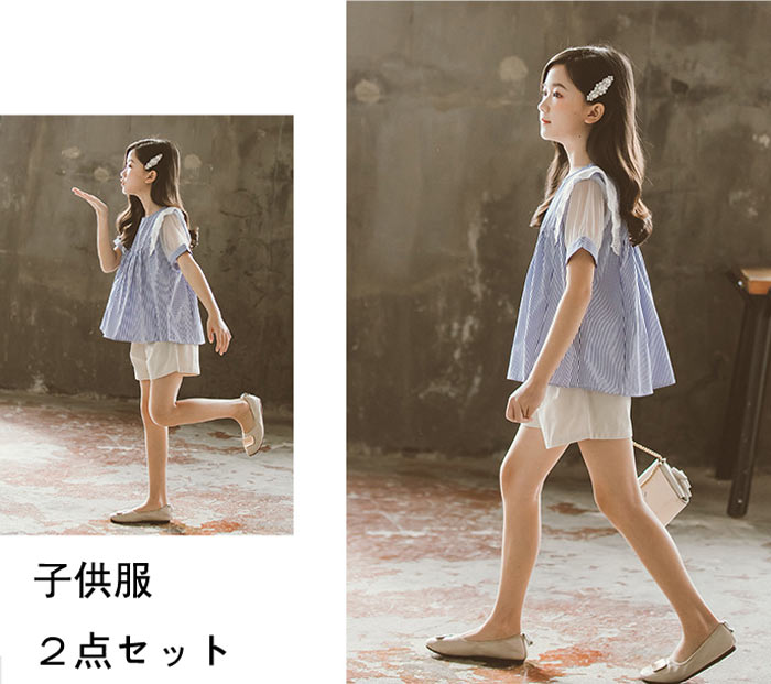 通勤 ボーダー柄トップス Tシャツ パンツ お出かけ アウトウエア 学生 パンツ 女の子 キッズ キッズ用 こども服120 130 140 150 160 165cm