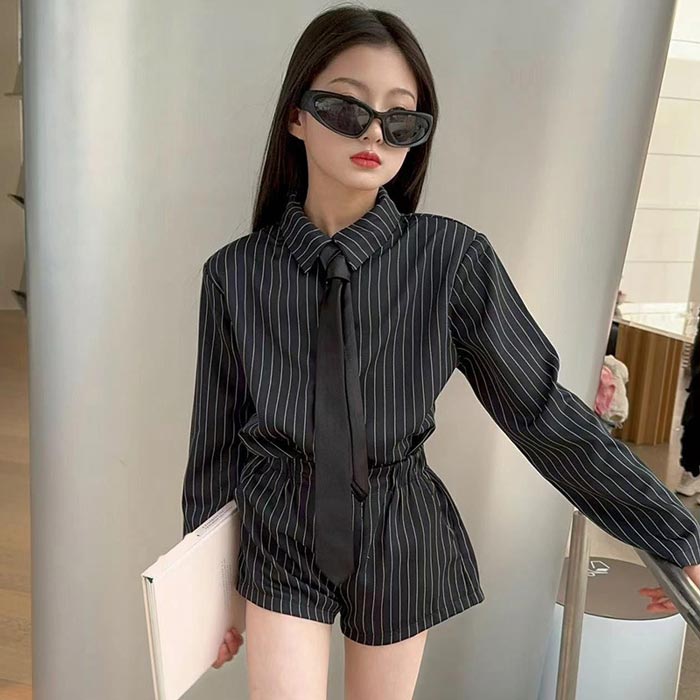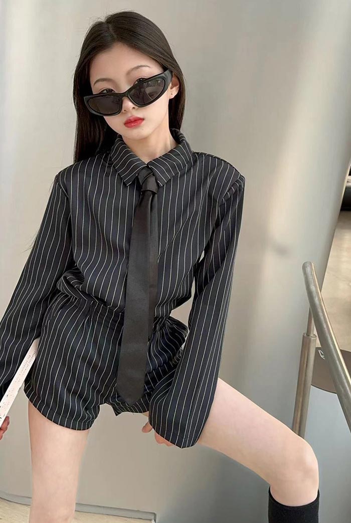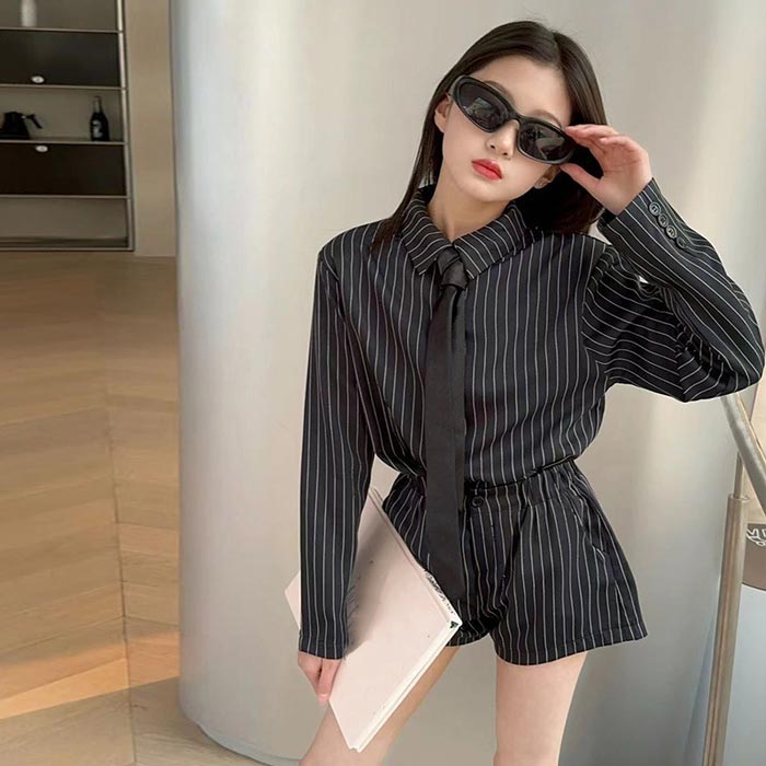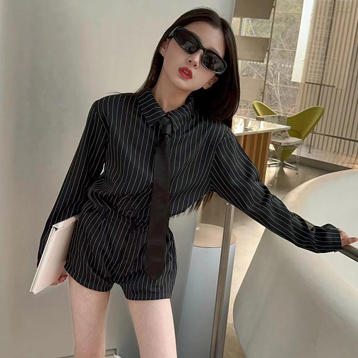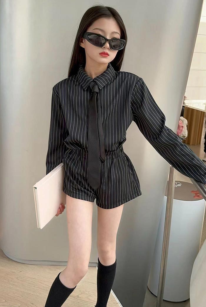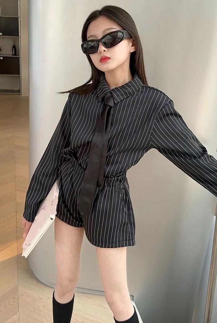シアースリーブ ドッキングシャツ ボウタイシャツブラウス