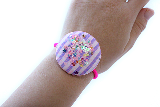 BIGホログラム入りストライプ柄くるみボタンデザイン キッズ ヘアゴム ヘアアクセサリー 髪飾り 髪留め 保育園 幼稚園 くるみボタン