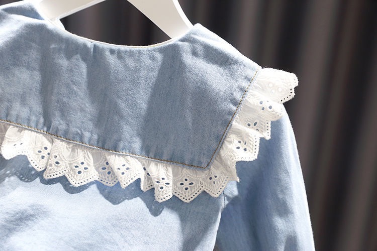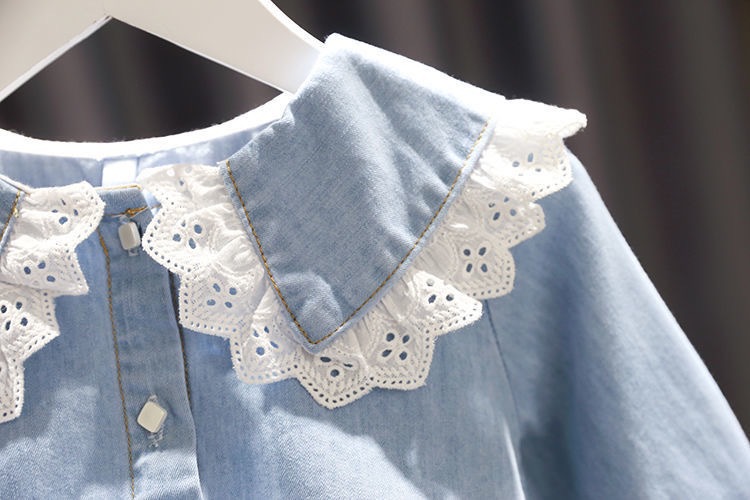 デニム 女の子 レース ブラウス 長袖