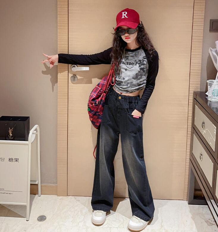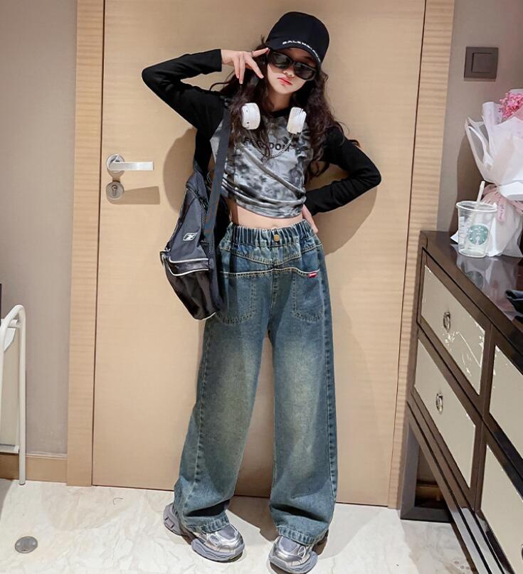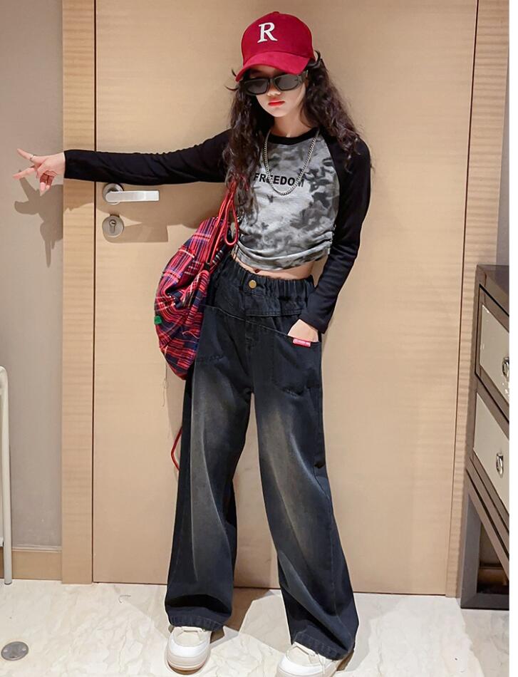 ダンス衣装 女の子 セットアップ 子供服 キッズ ヒップホップ衣装 Tシャツ ロングパンツ ユニセックス ワイド プリントデザインパンツ ヒップホップ衣装 ダンスパンツ ステージ衣装 ジャズダンス衣装