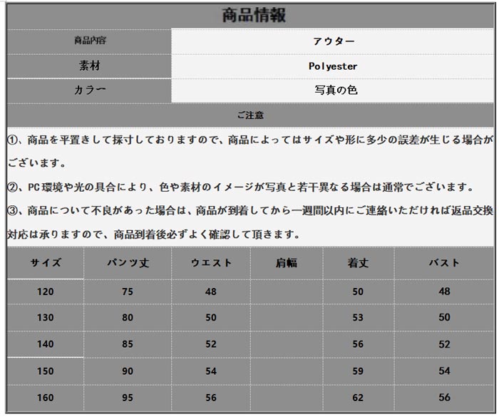 Key1699085441759: 120(身長約115cm) 130(身長約125cm) 140(身長約135cm) 150(身長約145cm) 160(身長約155cm) 170(身長約160-165cm)