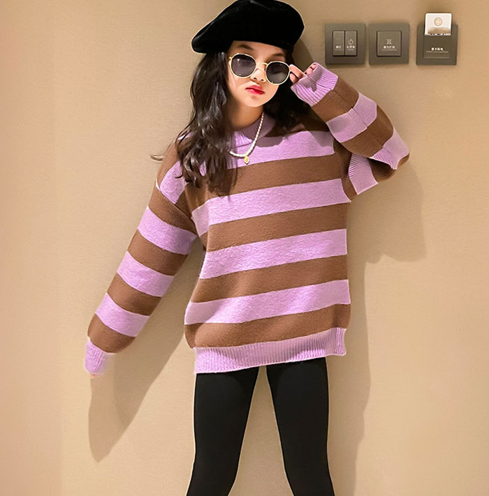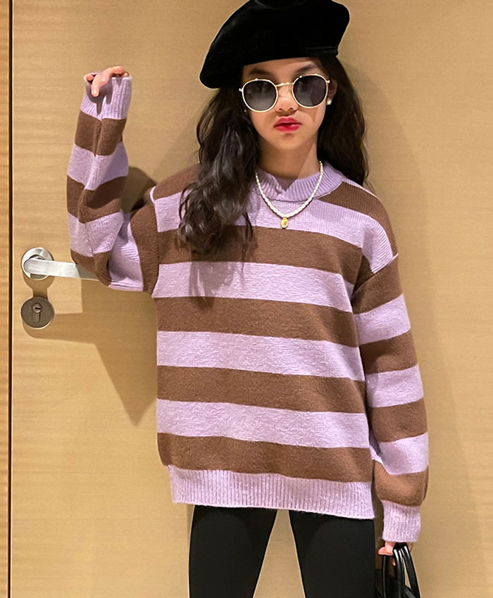 ニット キッズ ジュニア 女の子 ボーダー柄 セーター ニットワンピース ジュニア120 130 140 150 160 170cm