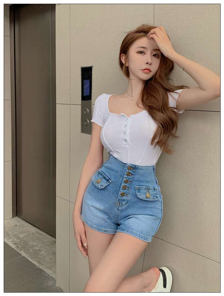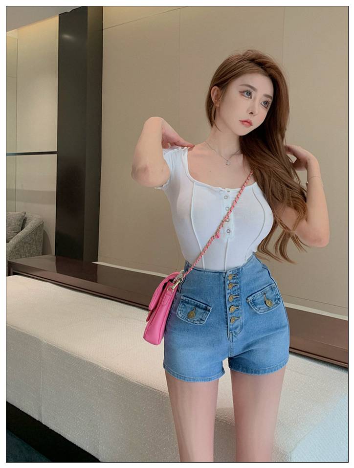 デニムパンツ ビジュー付き