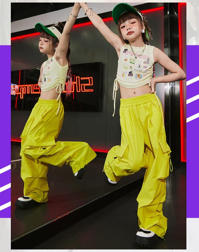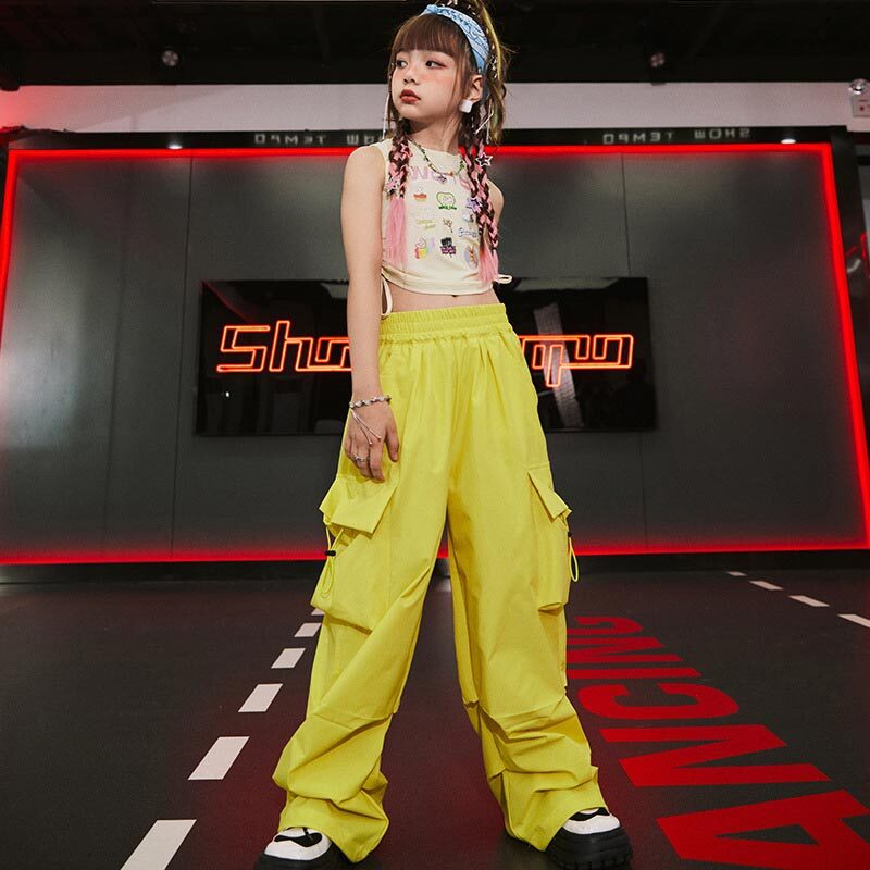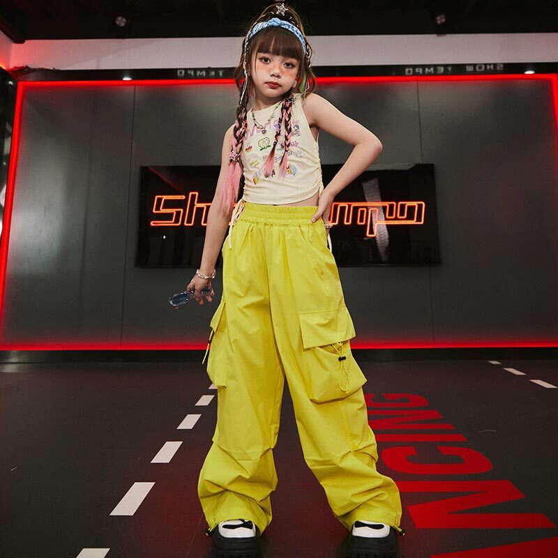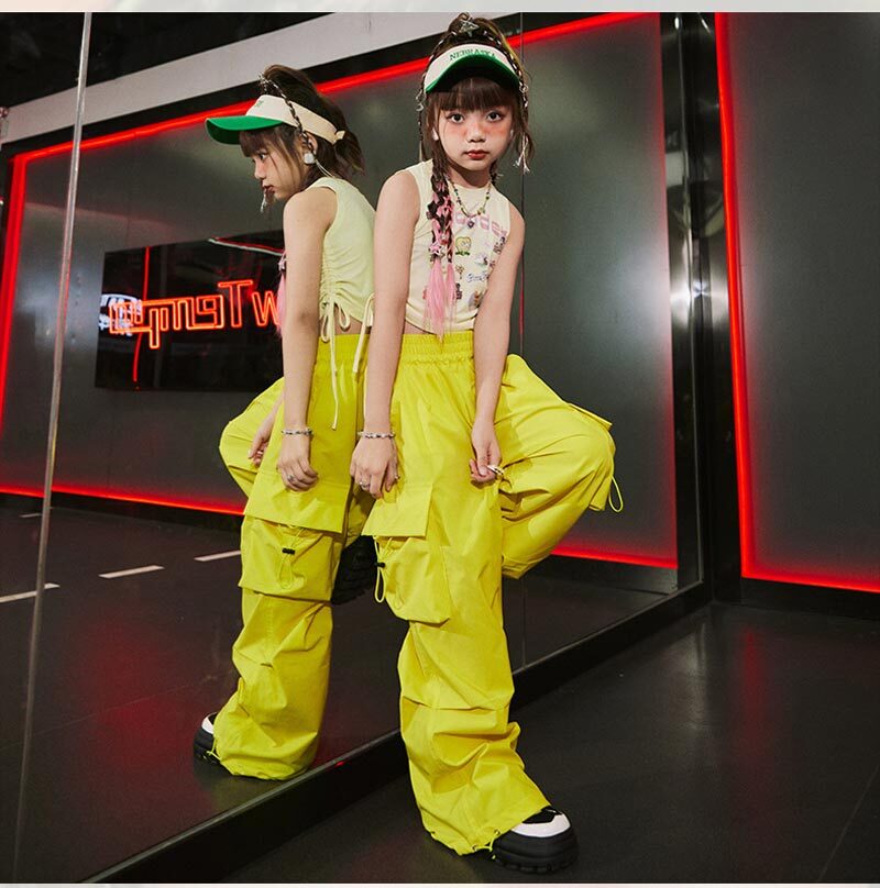 ダンス衣装 子供服 キッズ 女の子 男の子 ヒップホップ衣装 ベスト セットアップ Tシャツ ロングパンツ ユニセックス ワイド ヒップホップ衣装 ダンスパンツ ステージ衣装 ジャズダンス衣装 スポー