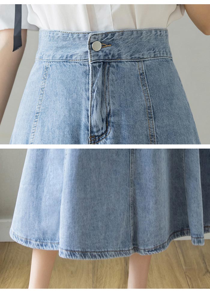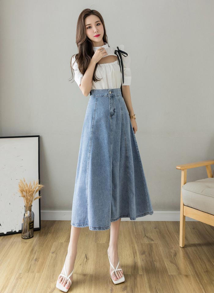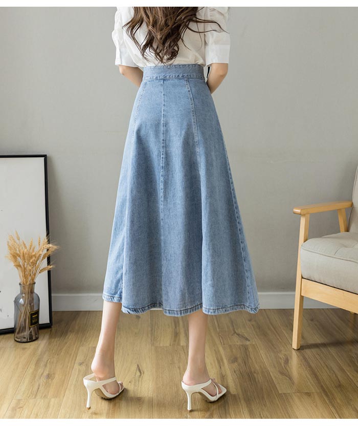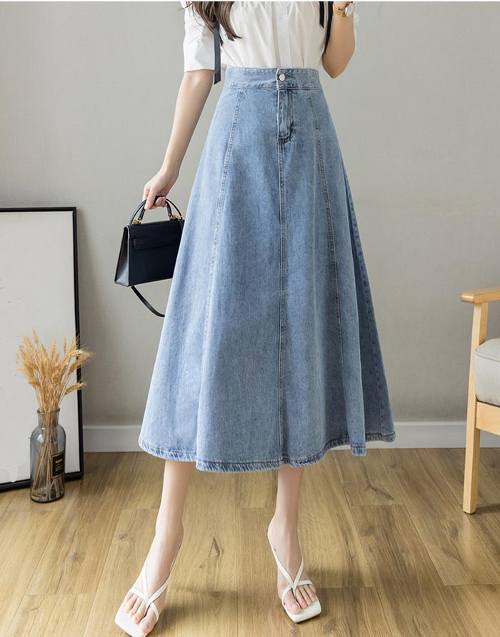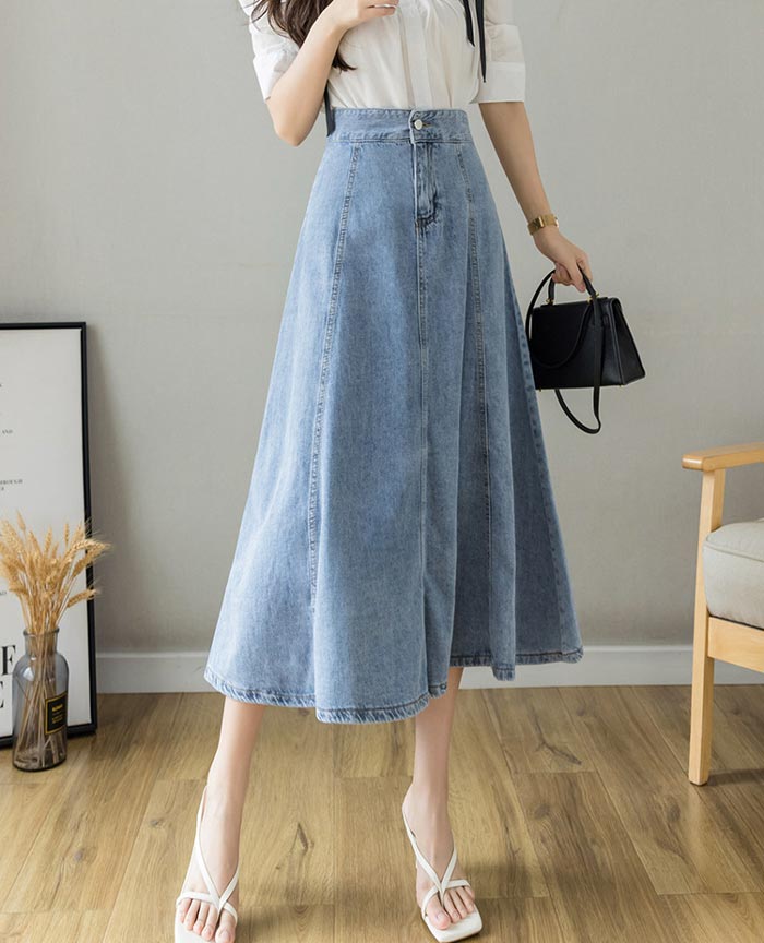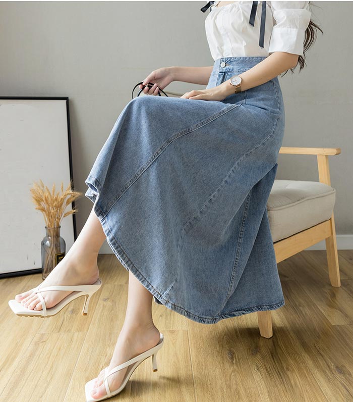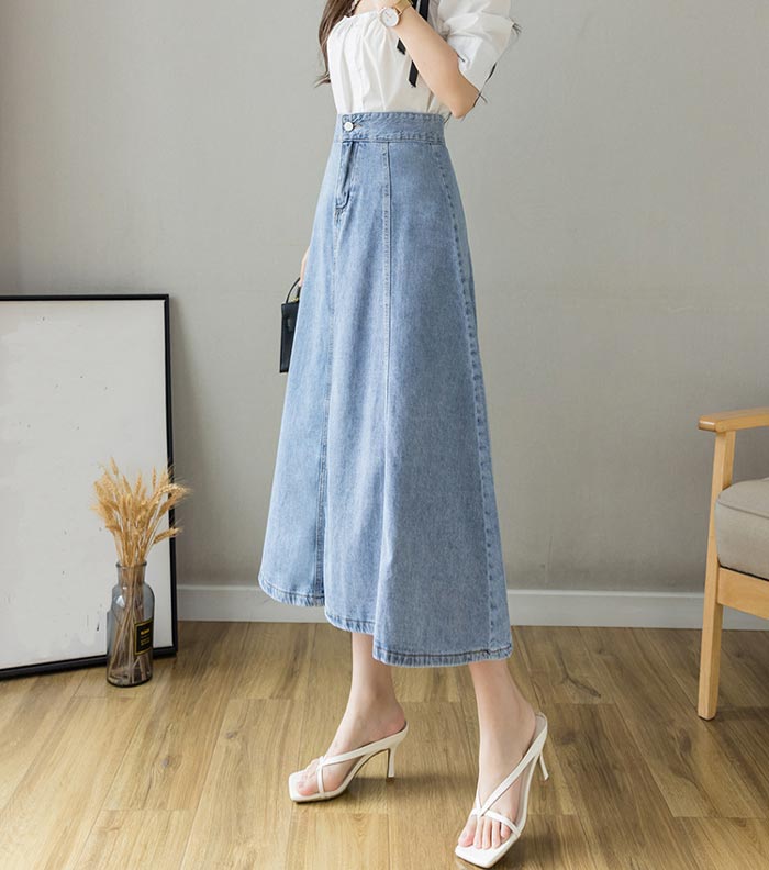 レディースデニムスカートロング丈Aライ