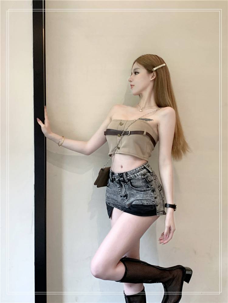 デニムパンツ ビジュー付き