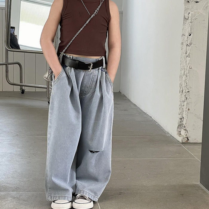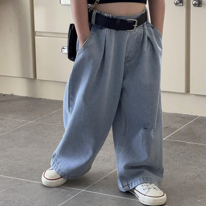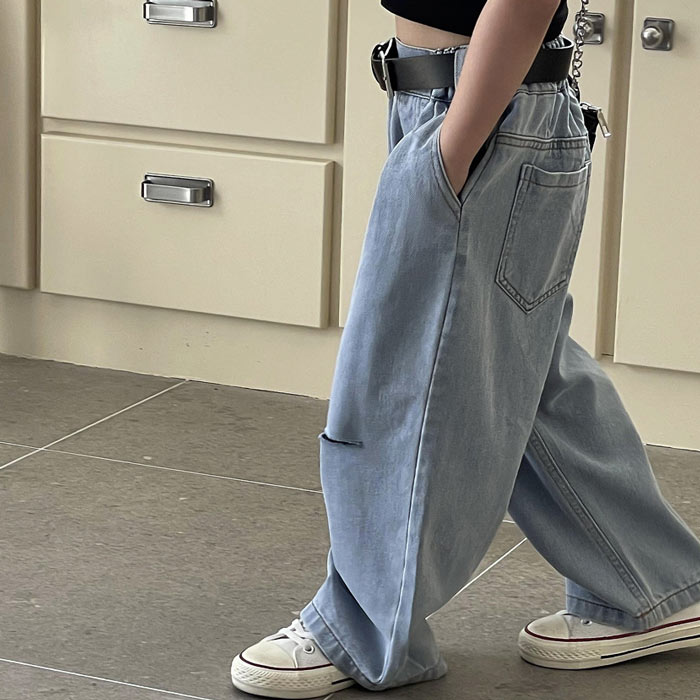デニムパンツ ビジュー付き