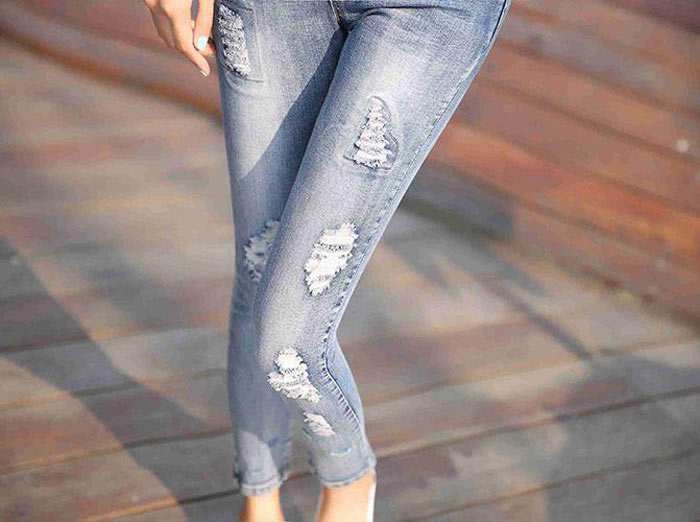 デニムパンツ ビジュー付き