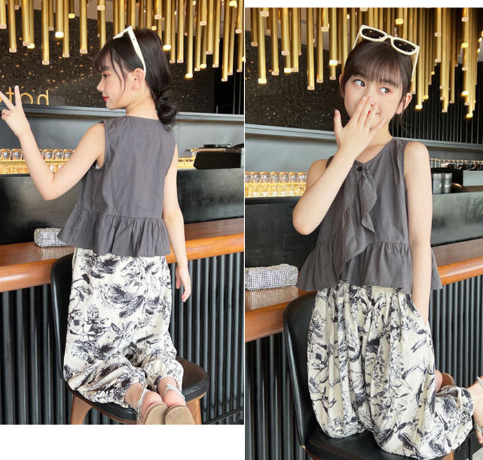 キッズ セットアップ 女の子 ノースリーブ Tシャツ パンツ 夏服 上下セット110 120 130 140 150 160cm