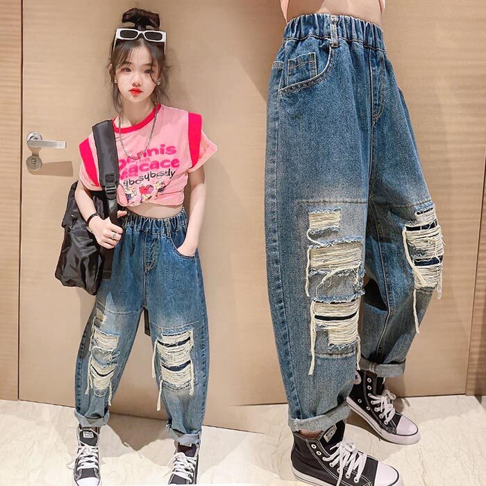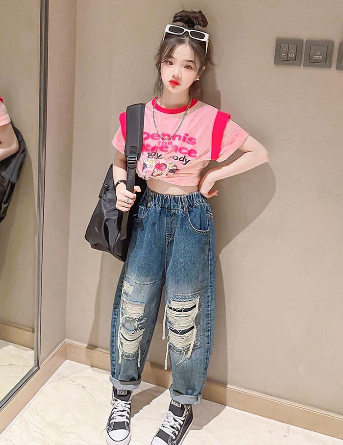 デニムパンツ ビジュー付き