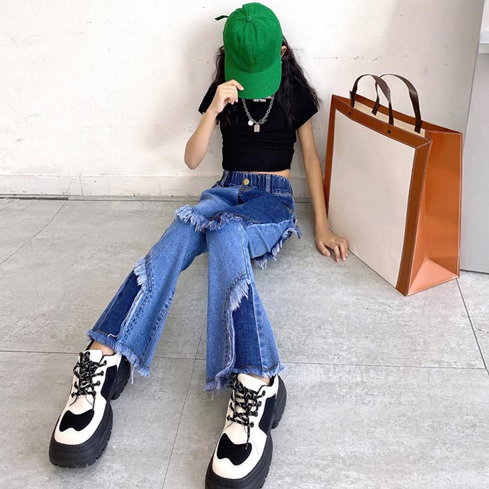 デニムパンツ ビジュー付き