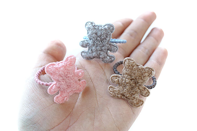 くるくるボアくまちゃん型ワッペンデザ