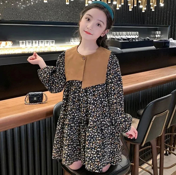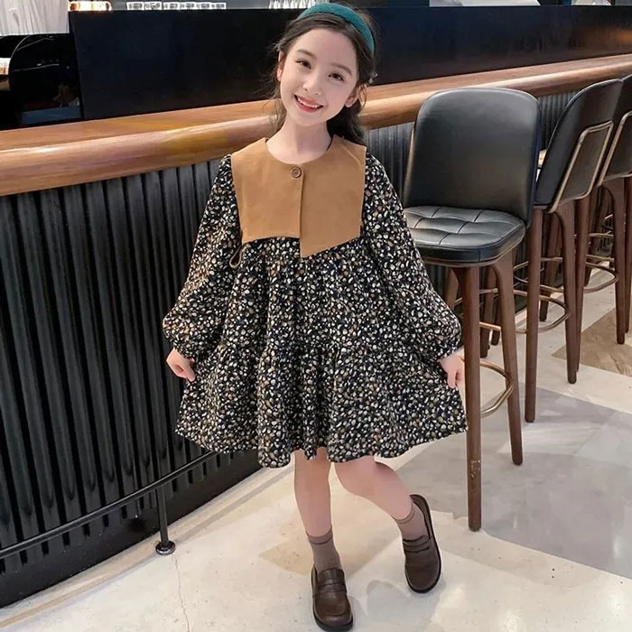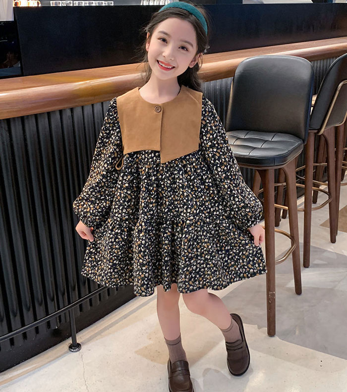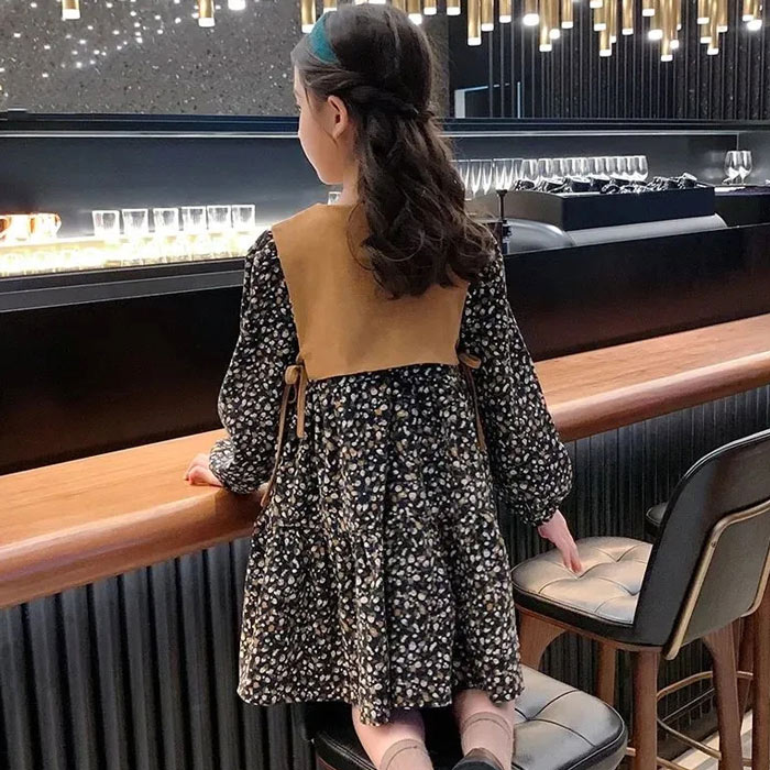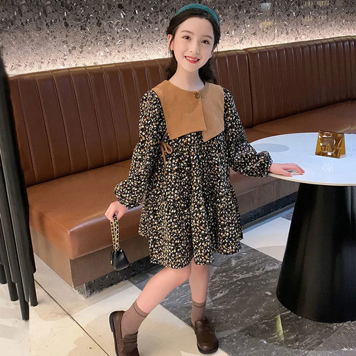 お嬢様風 花柄 ワンピース 可愛い 長袖 ワンピース 韓国子供服 ドレス110 120 130 140 150 160cm