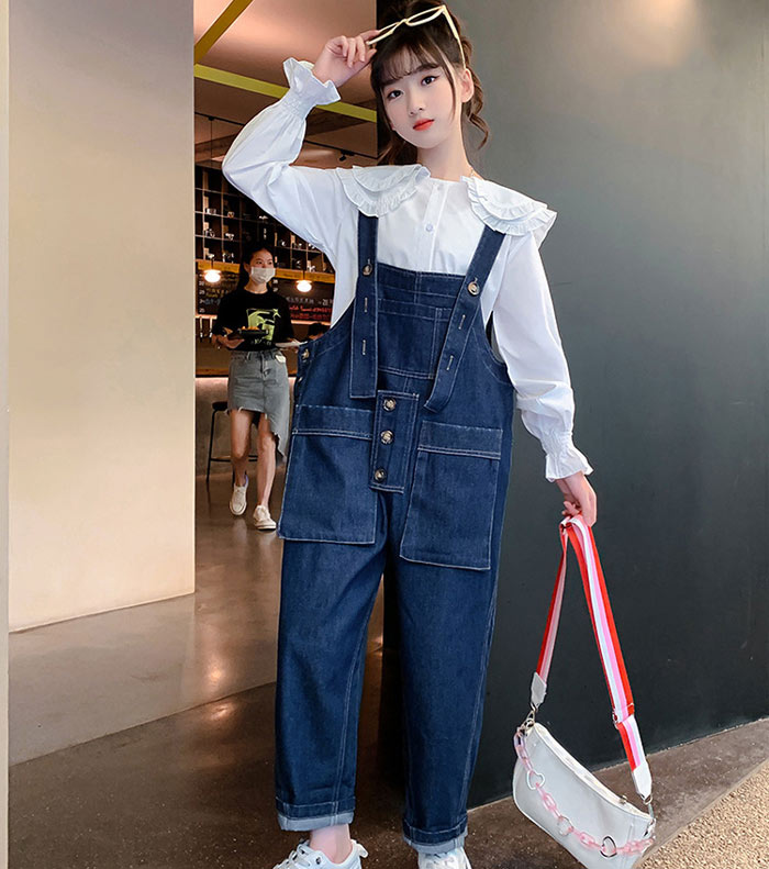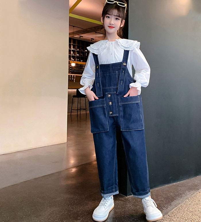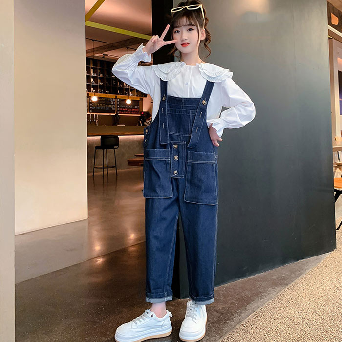 キッズ サロペット デニムパンツ デニムオールインワン ロングパンツ オーバーオール 120 130 140cm 150 160 170cm