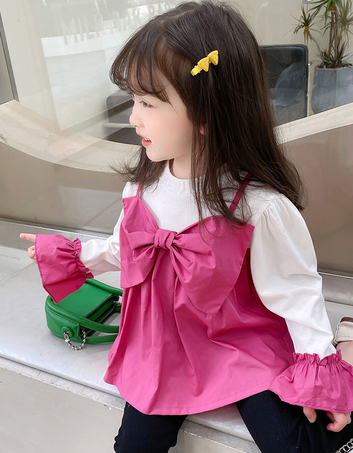 シアースリーブ ドッキングシャツ ボウタイシャツブラウス