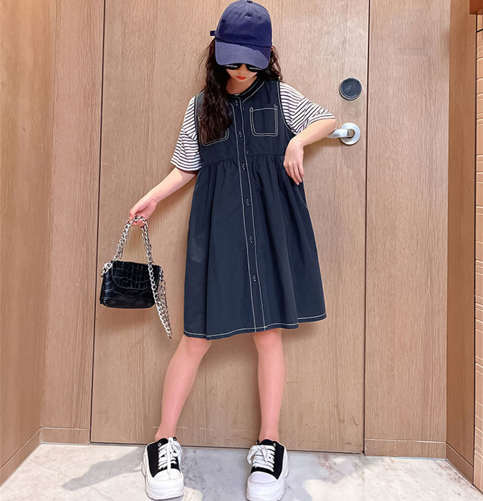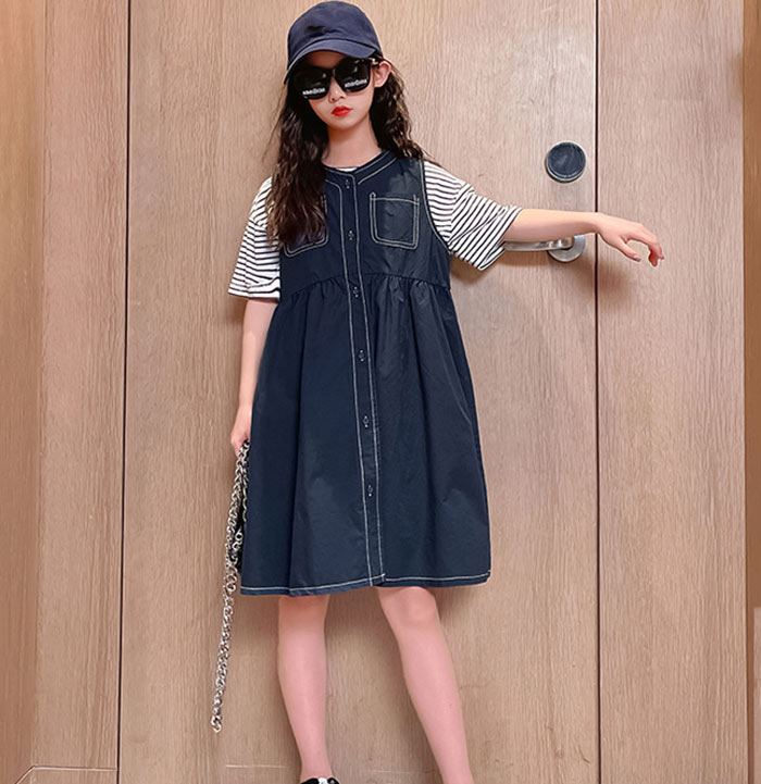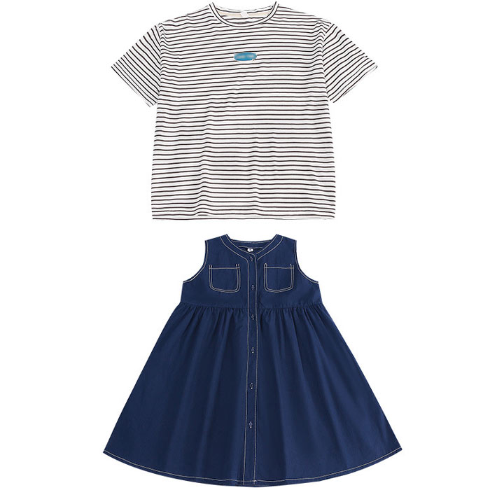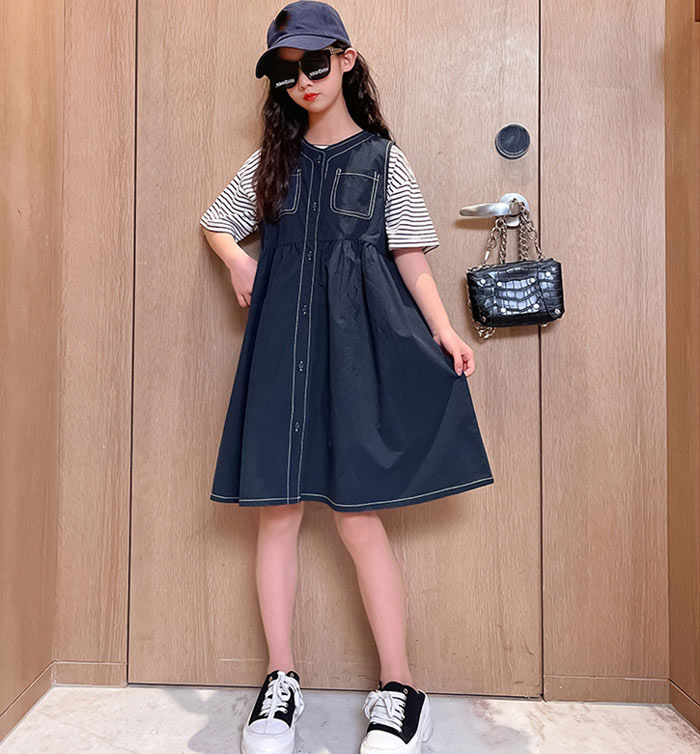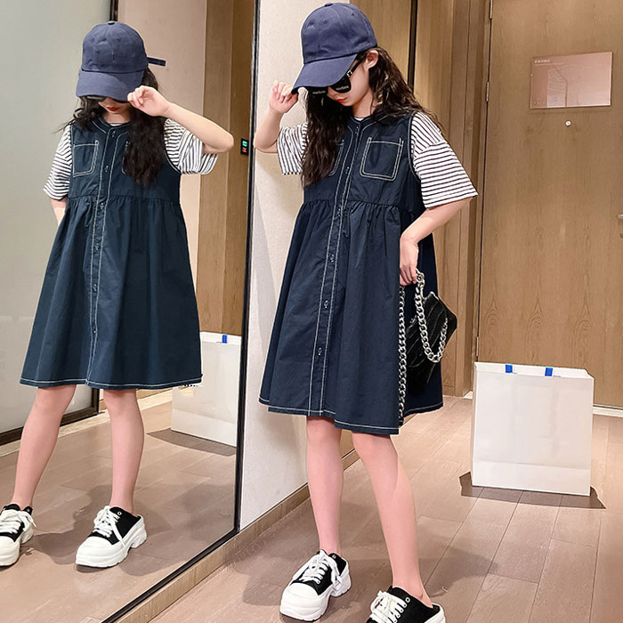 半袖 tシャツ キッズ 2点セット ボーダー柄 Tシャツ +サスペンダースカート 韓国子供服 サロペット 120 130 140 150 160 170cm