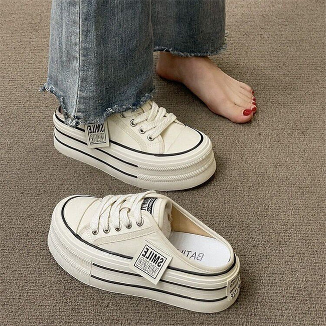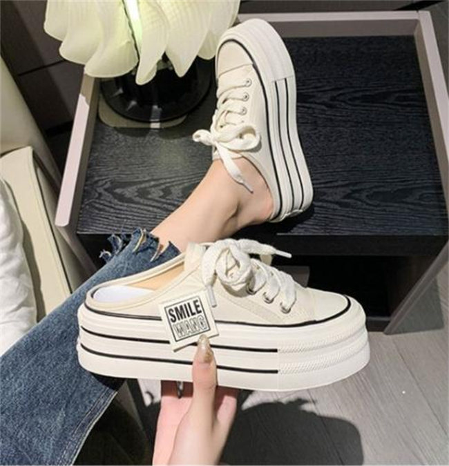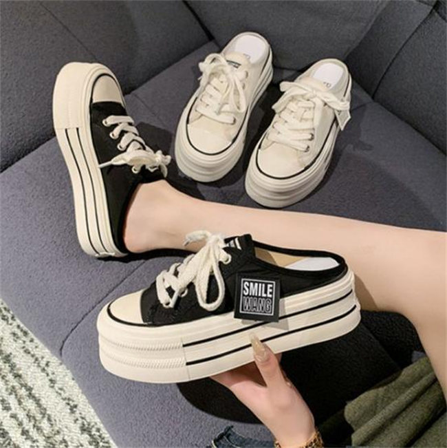 2色展開かかとなしスニーカー 厚底靴 上げ底 レディース シューズ スリッパ風 サンダル 軽量 ズック靴 楽ちん 履きやすい 女性 蒸れない 春夏秋 身長アップ カジュアルシューズ おしゃれ かわいい